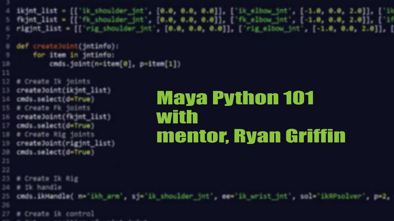 By taking this course today, you'll get Rigging Dojo Mentor, Ryan Griffin Python scripting best practices, while he guides you through the coding of a basic rigging tool project in Autodesk Maya.